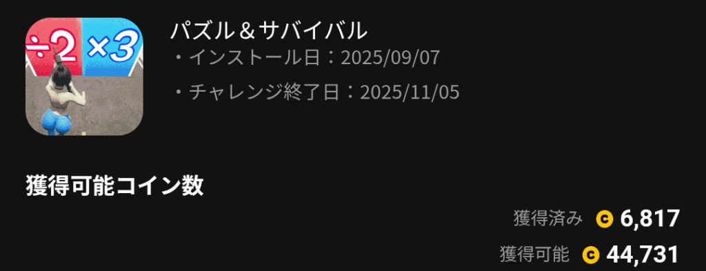 ゲームアプリ案件って1週間頑張っても100コインとかで全く割に合わない印象で敬遠してたけど 今回は5,477コインも!