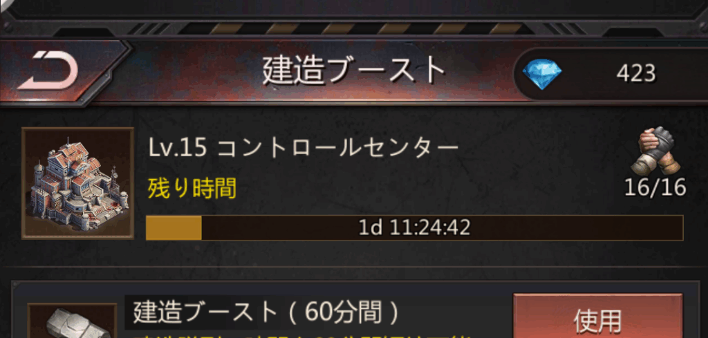 スマホをいじれるようになったタイミングでブーストして建築を完了させ、次の建築を始めて、、、の繰り返しでした