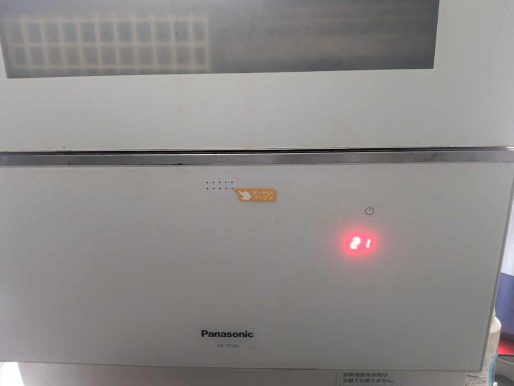 パナソニックの卓上型食洗機では、操作部に「H21」のエラー表示が出ることがあります。これは「泡が大量に発生している/水漏れしている可能性あり」という警告を示すもので、機器内部での異常状態を安全確保のために停止する設計です。